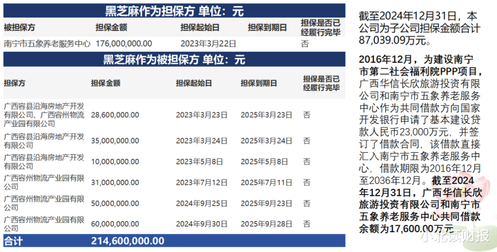 2020年9月,黑芝麻以所持广西广投国医投资有限公司36.41%股权(对应出资额6,553万元)为限,为南宁市儿童医院建设运营管理有限公司,向广发银行南宁分行5.05亿元借款提供担保,担保金额为6,553万元。